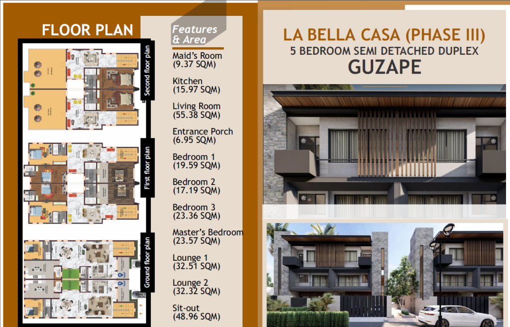 La Bella Casa (Phase II) is a 6 units of luxury semi-detached duplex built to meet the desire of every family, a worthy home for living, where each units is seating on 180 square meters of a total land size of about 1800 square meters.